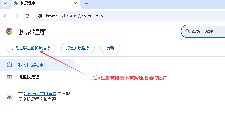 4. 打开扩展程序中右上角的开发者模式,点击左边加载扩展程序